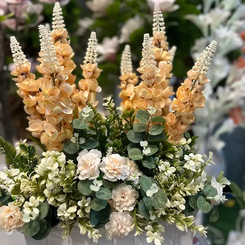 A beautifully crafted artificial floral arrangement featuring soft blush blooms and lush greenery, designed to add timeless elegance to any space. Perfect for tables, consoles, or shelves.